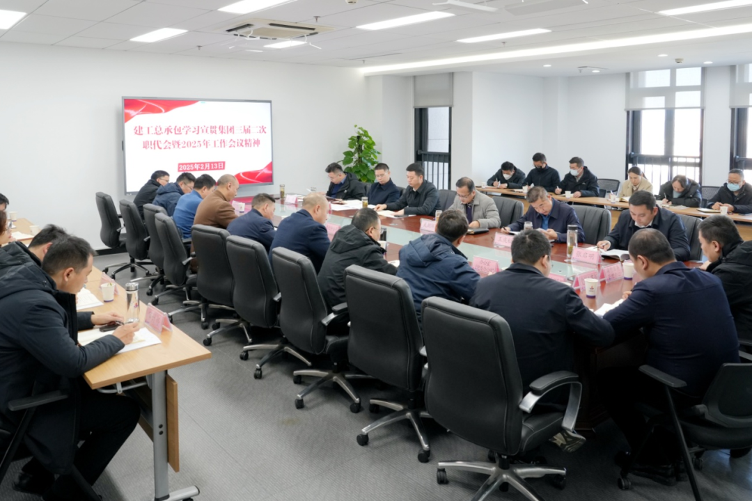 2月13日,公司召開集團三屆二次職代會精神宣貫暨2025年經濟指標分析會,迅速學習宣貫建工控股三屆二次職代會暨2025年工作會議精神,動員廣大干部職工把思想和行動統一到集團決策部署上來。公司領導班子成員,所屬各單位、機關部門負責同志參加會議,與會人員圍繞公司2025年經濟指標和重點工作任務進行了研討交流。