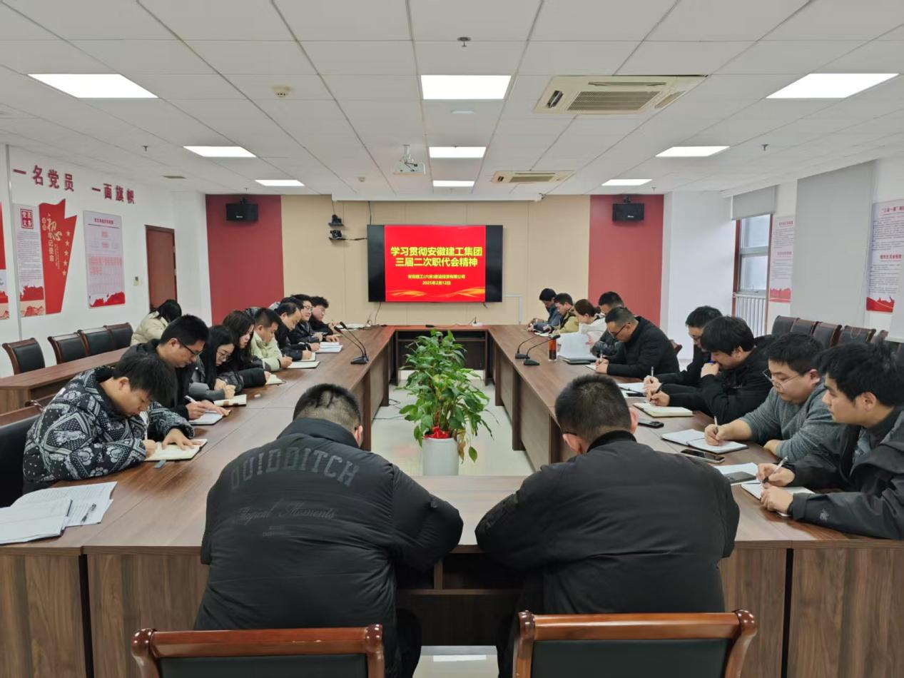 2月9日至12日,安徽建工集團控股有限公司三屆二次職工代表大會暨2025年工作會議勝利召開。會后,各單位通過中心組學習、專題會議等多種形式,傳達學習集團黨委書記、董事長楊善斌作的題為《改革創新 擔當作為 強化企業管理 加快轉型升級 奮力推進安徽建工集團高質量發展大發展》講話精神和集團黨委委員、總會計師王淑德作的《集團年度工作報告》精神,迅速掀起學習宣貫熱潮。