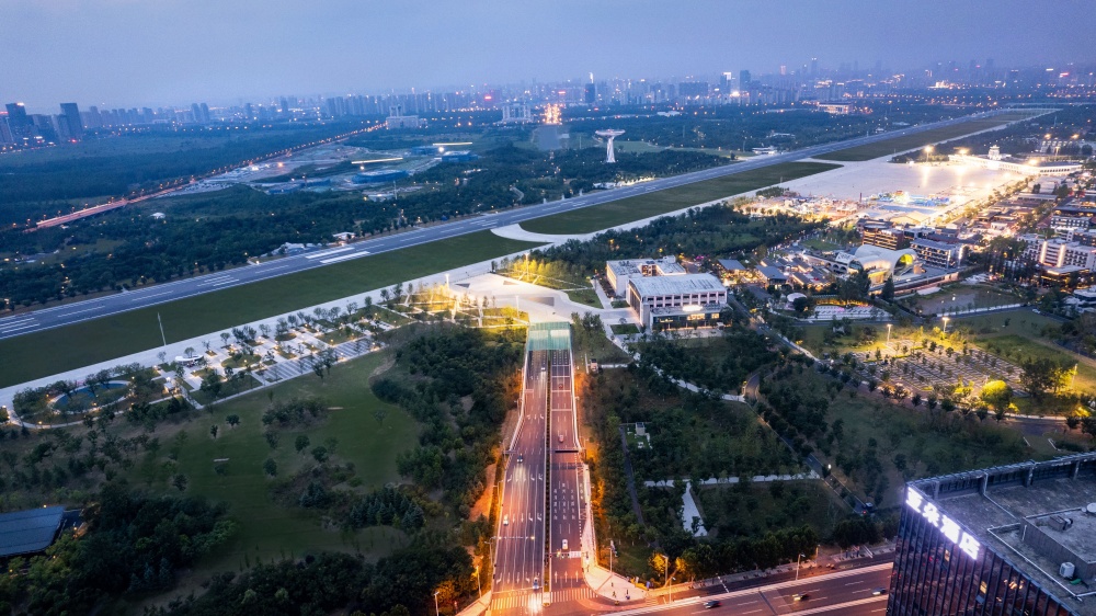 “一隧穿城融綠韻,城市更新賦動能。”濱湖科學(xué)城花園大道(徽州大道-包河大道)建設(shè)工程位于合肥濱湖科學(xué)城,西起徽州大道,東至包河大道,全長約3km,其中2.26km采用下穿隧道方式穿越錦繡湖、公園生態(tài)綠地及機(jī)場跑道。項目在設(shè)計復(fù)雜程度、施工工藝難度上均刷新全省“紀(jì)錄”,創(chuàng)下全省市政道路建設(shè)史上的多個“首次”,順利實現(xiàn)135m箱涵節(jié)段“無損”下穿機(jī)場跑道,讓“老”機(jī)場建“新”園博這一最大特色得到完美體現(xiàn)。