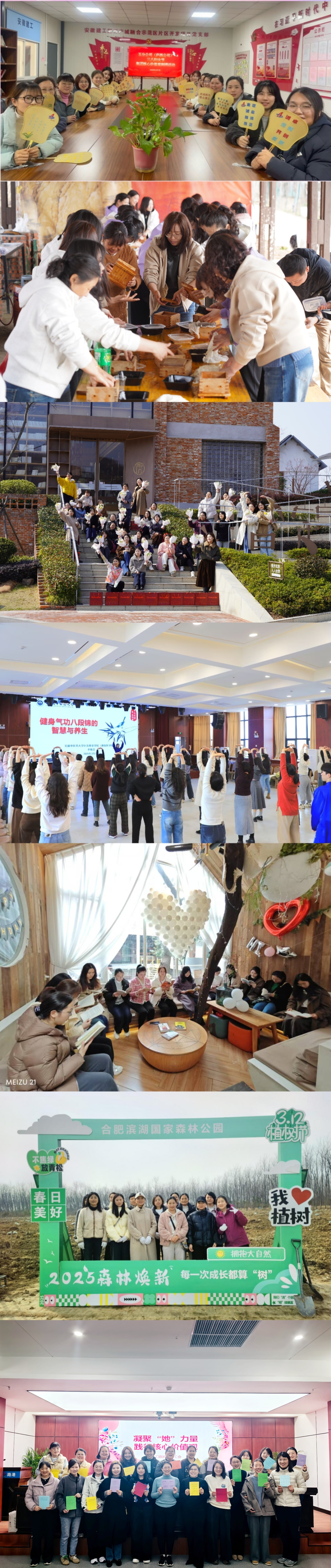 守護(hù)“她”權(quán)益。集團(tuán)工會(huì)開展普法宣傳活動(dòng)、工會(huì)共建暨學(xué)雷鋒志愿服務(wù)、暖心行慰問活動(dòng),進(jìn)一步提升女職工的法律意識(shí)和維權(quán)能力,促進(jìn)女職工間的交流與合作,傳遞“娘家人”的溫暖與支持。展示“她”風(fēng)采。建工建投、建工路港、長城置業(yè)、建工智能制造、建工檢測、酒店公司等單位開展巾幗事跡分享、非遺手工制作、八段錦等體驗(yàn)活動(dòng),讓女職工在動(dòng)手實(shí)踐中感受傳統(tǒng)文化的魅力,展現(xiàn)巧思與創(chuàng)造力,提升自我保健意識(shí),享受節(jié)日的溫馨與快樂。激發(fā)“她”活力。建工水利、建工三建、建工路橋、建工投資、建工總承包、商貿(mào)物流、淮河建投、集團(tuán)機(jī)關(guān)等單位開展讀書沙龍、紅色教育、戶外踏青等活動(dòng),激發(fā)女職工的閱讀熱情,感悟革命精神,享受自然之美,進(jìn)一步增強(qiáng)了團(tuán)隊(duì)的凝聚力和向心力。
