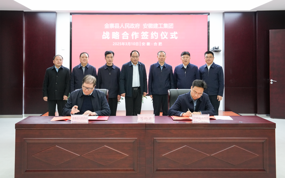 3月10日下午,安徽建工集團與金寨縣人民政府簽訂戰(zhàn)略合作協(xié)議。安徽建工控股黨委委員、副總經(jīng)理盛明宏與金寨縣委副書記、縣長董益樂共同見證簽約,并就深化政企合作進行座談交流。