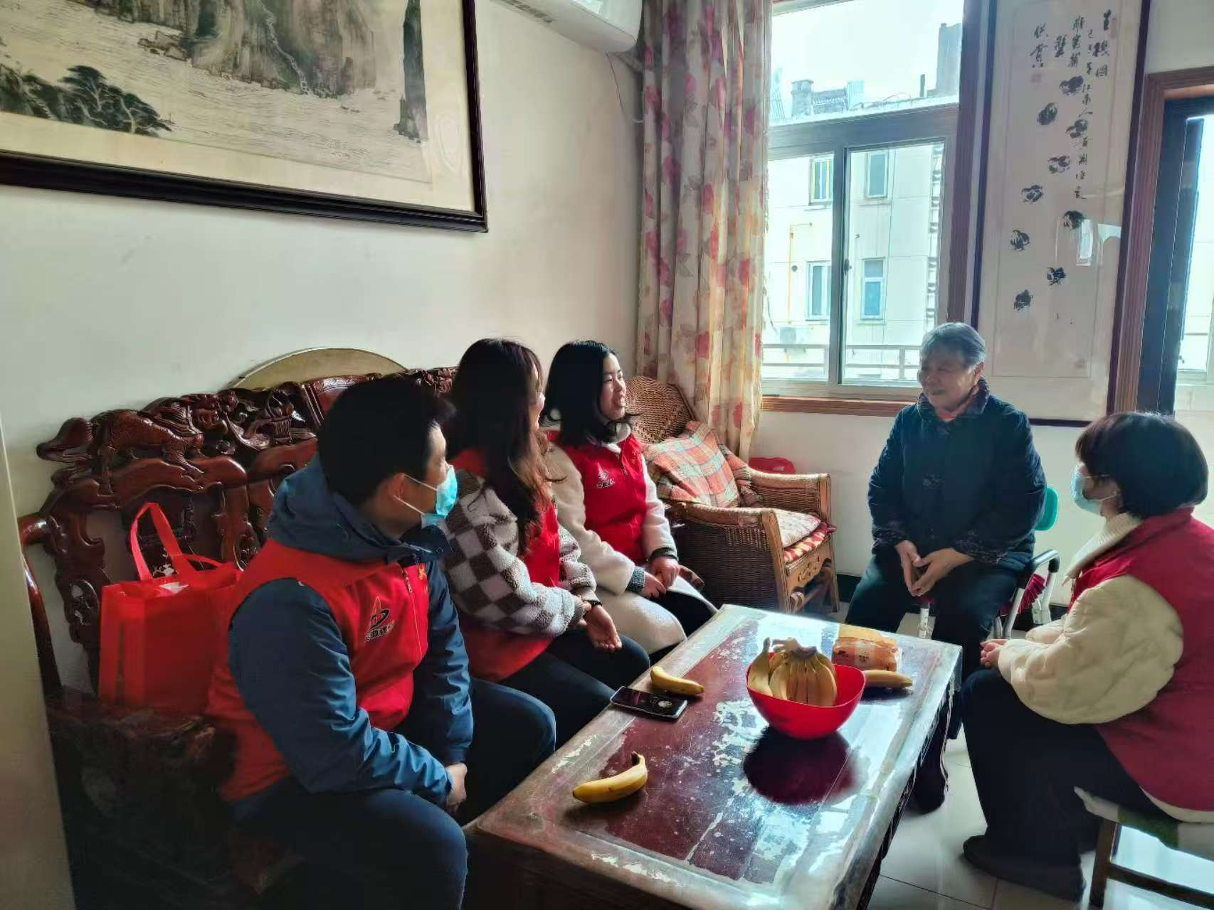 團員青年們在社區志愿者的帶領下前往轄區老人住所。一進門,大家就親切地與老人拉起家常,詳細詢問老人的身體狀況和生活需求,耐心傾聽老人講述過往經歷,讓老人切實感受到尊重與關懷,現場氛圍溫馨融洽。