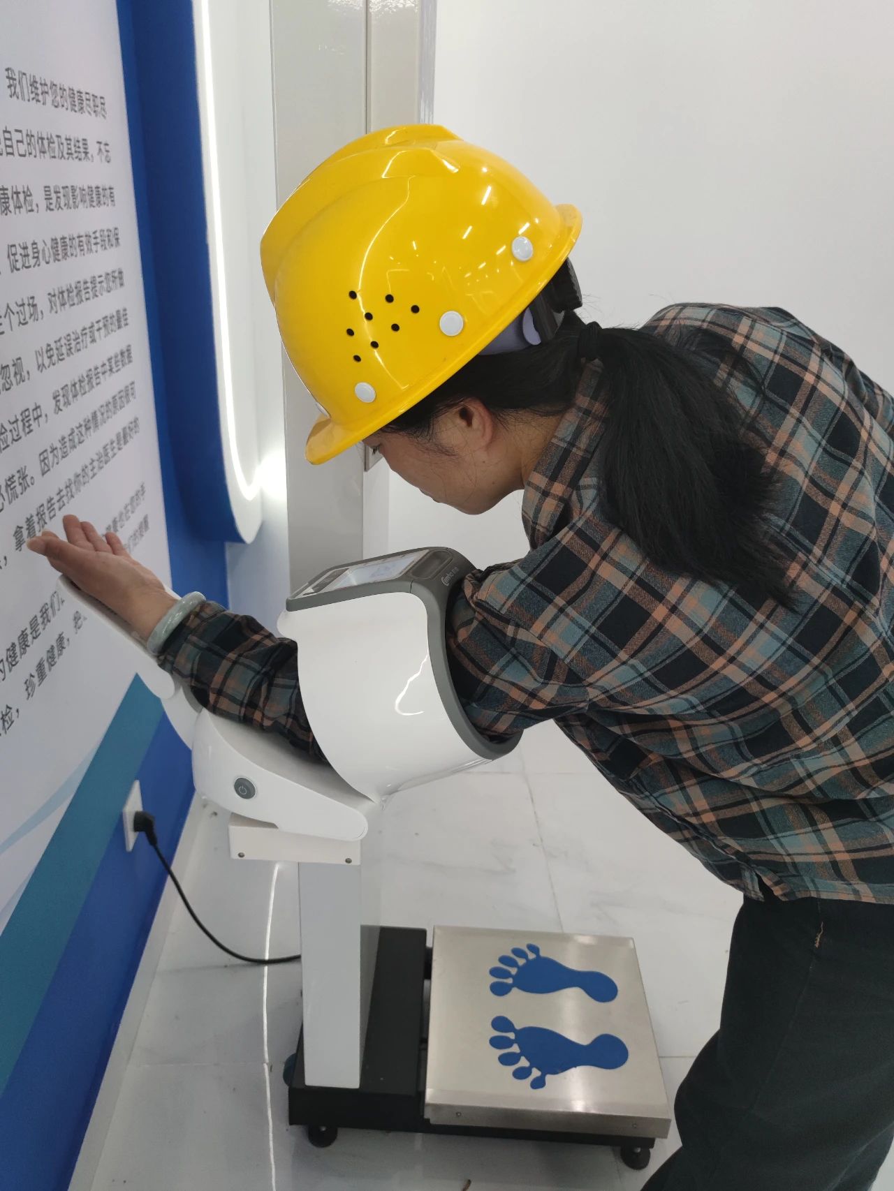 鳳凰山水庫樞紐工程項目部配備了健康體檢儀,可測量身高、體重、體脂肪率,還能檢測血壓等生理指標,幫助員工了解自身身體狀況,及時察覺潛在健康問題。血壓、體脂隨時測,健康檔案云端存!
