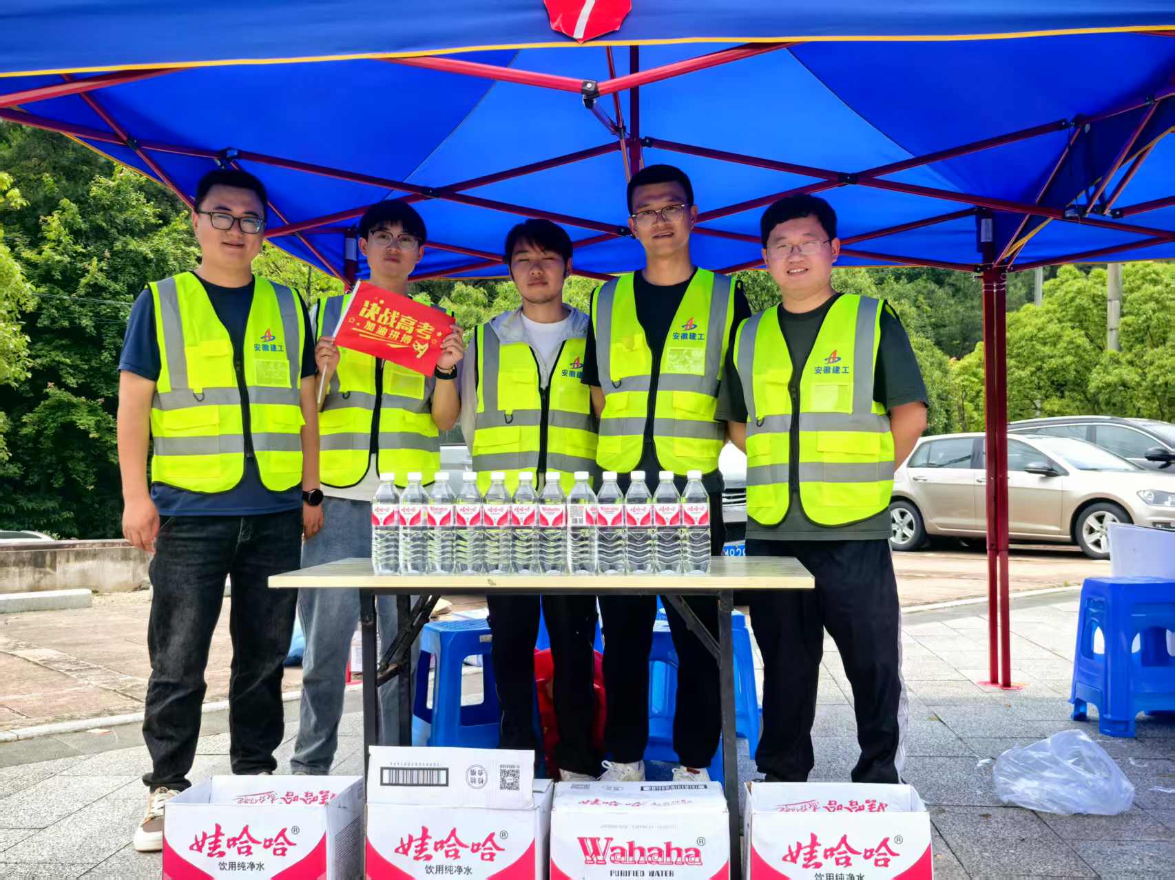 6月7日,建工交航公司市政分公司(王家壩建投)攜手淮河、阜東社區組成高考志愿服務隊,在阜南一初、實驗中學考點支起“愛心助考驛站”。志愿者們提前支起遮陽棚,為考生和家長遞上冰鎮礦泉水、防暑藥品與備用文具,用連續六年的堅守為高考學子護航,讓考場外充滿暖心服務的溫度。