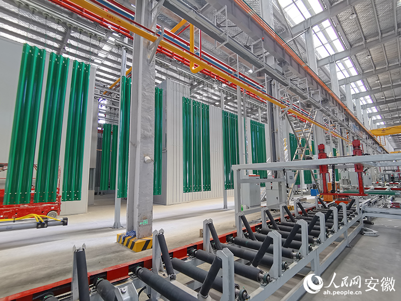 以波形梁護欄為例,該產(chǎn)品生產(chǎn)制作并不復雜,但由于皖北皖中皖南氣候條件不同,對產(chǎn)品防腐工藝要求極高。在產(chǎn)業(yè)園一期,已經(jīng)配備全自動公路波形護欄板冷彎成型生產(chǎn)線、熱鍍鋅生產(chǎn)線及噴粉復合生產(chǎn)線,其中全自動噴粉復合生產(chǎn)線采用積放鏈輸送工藝,集成國內(nèi)外先進設計理念,實現(xiàn)環(huán)氧鋅基與熱鍍鋅噴塑雙防腐工藝兼容,工件從下件到覆膜包裝全程自動化,智能化水平位居全國前列。