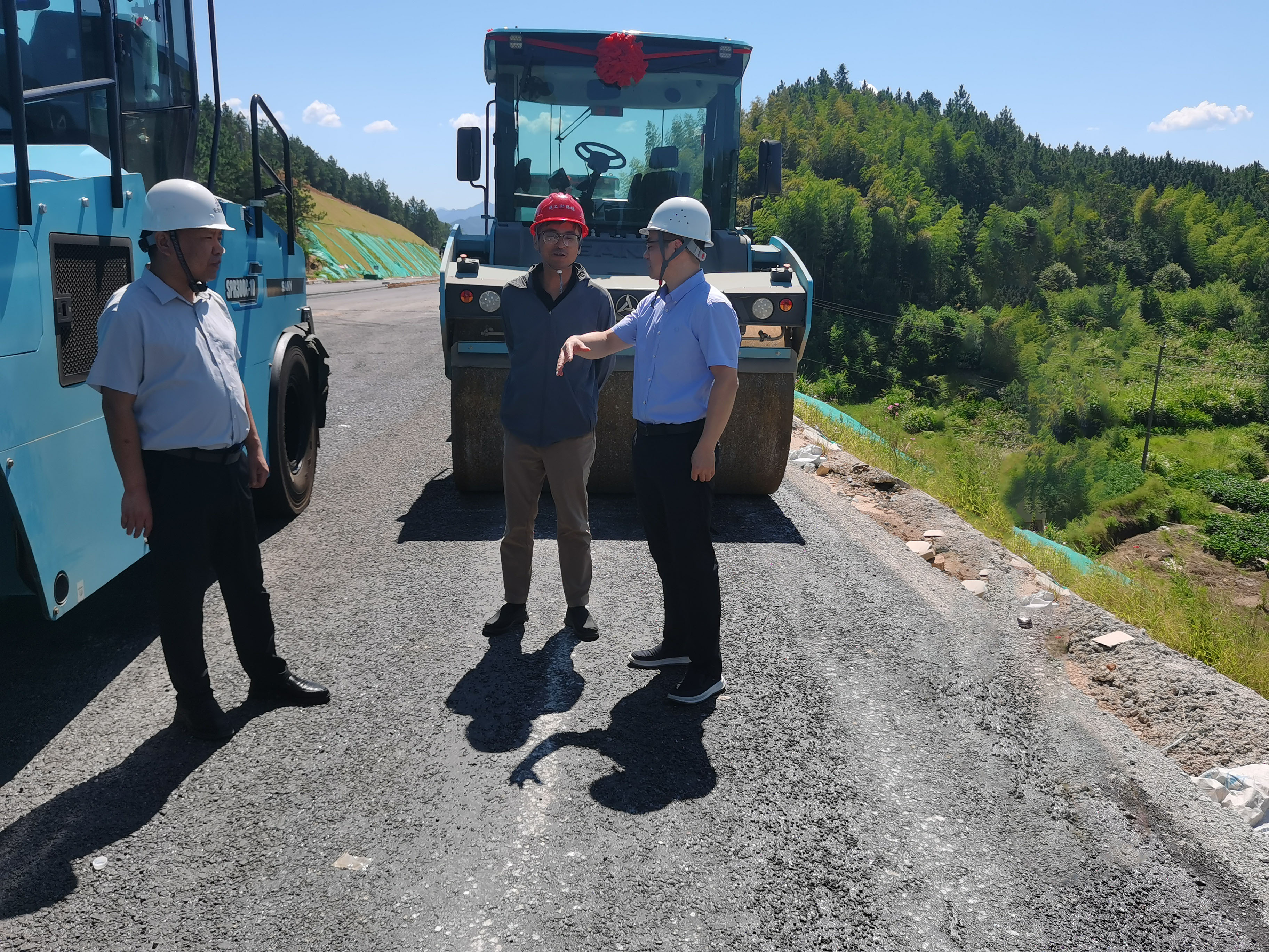 8月28日,公司黨委副書(shū)記、董事、總經(jīng)理張?chǎng)螏ш?duì)赴建工路橋宣涇高速項(xiàng)目調(diào)研無(wú)人攤鋪機(jī)群作業(yè)業(yè)務(wù)。
