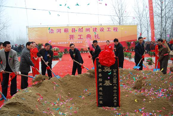 12月3日上午,澮河蘄縣船閘工程開工典禮儀式在蘄縣船閘工地現場隆重舉行。開工儀式在安徽省副省長黃海嵩宣布聲中正式開始。現場禮炮齊鳴,禮花飛舞。出席典禮的領導、嘉賓共同為澮河蘄縣船閘工程開工典禮奠基。安徽省交通廳廳長梅勁主持開工儀式,安徽省港航投資集團總經理李家俊、宿州市委書記吳旭軍參加了儀式并發(fā)表了重要講話。安徽省路港工程有限責任公司作為施工方組隊參加了開工儀式。
