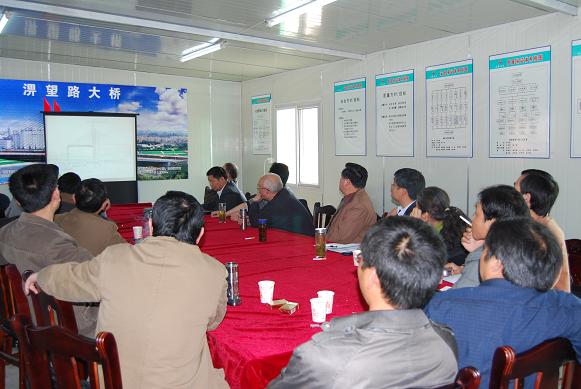 鄭總和戴總對項目部克服場地限制、結構復雜、技術難度大等多種不利因素,取得如此的成績感到高興,尤其是看到金桃大橋的雄偉英姿甚感欣慰;同時對項目部積極探索和鉆研技術難點的精神表示贊賞。并對兩項目下一步施工、質量技術管理工作提出要求,勉勵項目部依靠科學技術的支撐,進行方案的優化,保證安全質量,降低工程成本,提高工程的經濟和社會效益,進一步結合深入學習實踐科學發展觀,繼續開展技術的開發挖掘,進行技術的集成創新,研究、提煉項目工法和專利,為集團公司技術創新多做工作,以增強集團公司的核心競爭力。