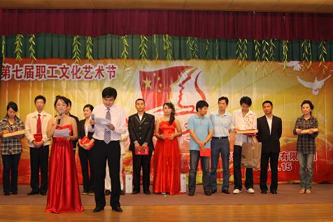 青歌賽分為歌曲演唱和企業(yè)文化知識考核兩部分。所有參賽選手的演唱作品,出自中宣部推薦的100首愛國歌曲,企業(yè)文化知識考核涵蓋建工集團企業(yè)精神、企業(yè)哲學、企業(yè)理念等內(nèi)容。比賽在集團團委制作的建國60周年紀念短片中拉開帷幕,來自所屬17個單位的27位選手相聚在建工大舞臺,用歌聲祝福偉大的祖國、偉大的黨,一曲曲膾炙人口紅色經(jīng)典歌曲唱出了建工青年對祖國母親的衷心祝福和對和諧建工科學發(fā)展的良好祝愿。經(jīng)過一番精彩比拼,省三建公司選送的《中國人》獲得一等獎,排名前10位的選手被授予建工十佳青年歌手光榮稱號。
